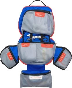 - Internal pockets are labeled (wound care/burn/blister, medication, cuts and scrapes, instruments, fracture/sprain and stop bleeding fast) making off-grid care easier and more instinctual