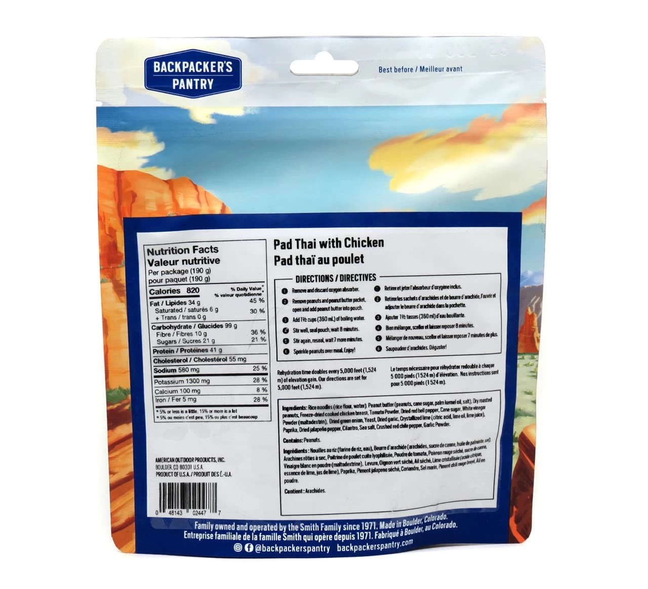 - Ingredients: rice noodle (rice flour, water), sauce (tomato powder (tomato, 1% silicon dioxide), organic cane sugar, white vinegar (maltodextrin and white distilled vinegar), savory soup base (maltodextrin, salt, autolyzed yeast extract, yeast extract, onion powder, silicon dioxide, turmeric extract (color), sunflower oil), garlic, crystallized lime (citric acid, lime oil, lime juice), cilantro, crushed red chili pepper, sea salt), peanut butter (peanuts, cane sugar, palm fruit oil (certified sustainable), salt), dry roasted peanuts, freeze-dried cooked white meat chicken, red bell pepper, sriracha powder (pure cane sugar, paprika, white vinegar (maltodextrin and white distilled vinegar), tomato powder (tomato, 1% silicon dioxide), jalapeno chili pepper, garlic, sea salt), green onion, crystallized lime (citric acid, lime oil, lime juice)