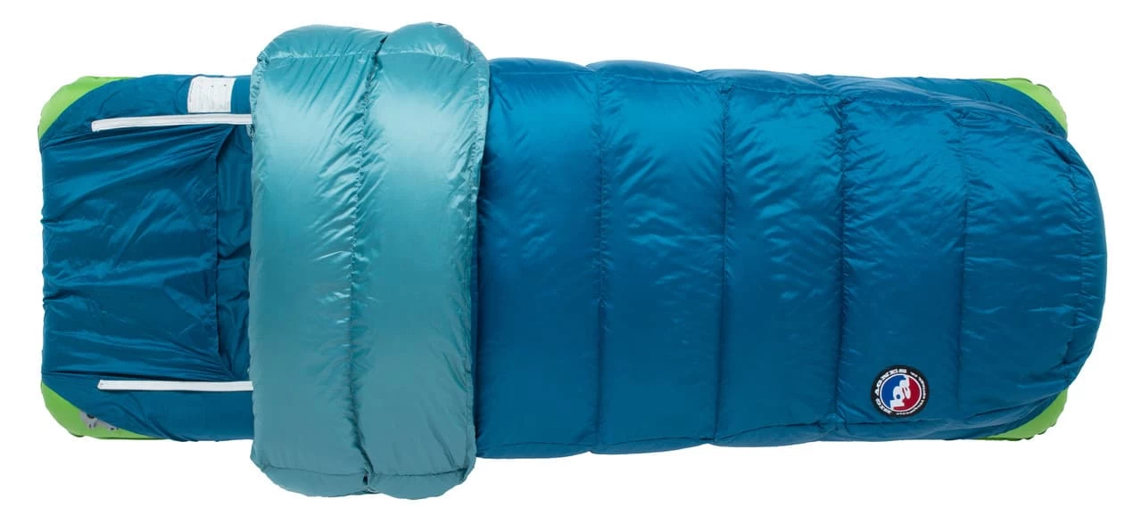 Dial in the perfect setup for the weather with the Roxy Ann 3N1, part of the Big Agnes Sleep System lineup. The multi-layer zippered bag lets you adjust insulation to match the conditions. To save weight, there is less insulation on the bottom, where the down would be crushed beneath your body and provide little warmth. Instead, an integrated sleeve holds your sleeping pad securely under you. The cut is roomier than a traditional mummy bag, but the overall weight is comparable to a narrower cut bag.