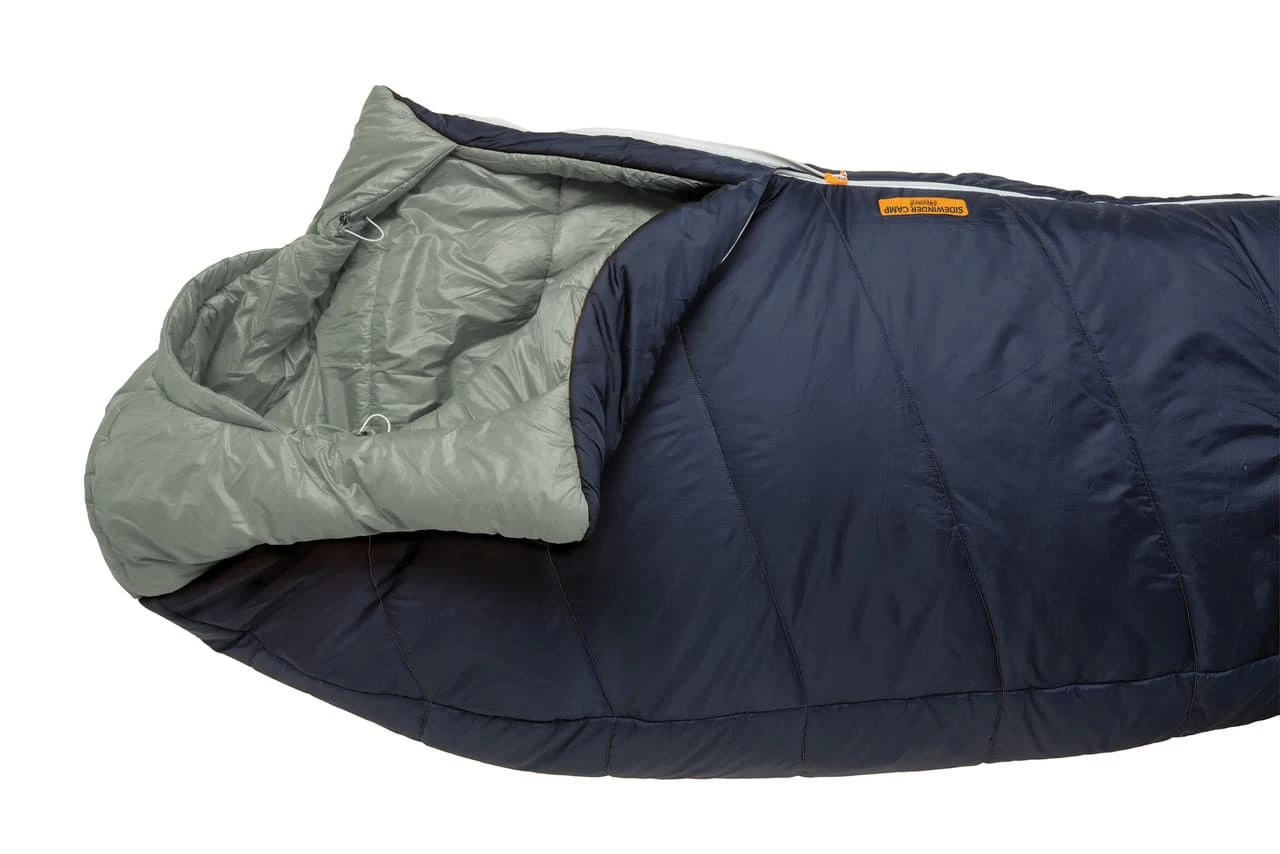A cozy mummy style bag for the side sleepers among us. The Sidewinder’s innovative cocoon pattern offers a great night’s sleep. Two layers of quilting wrap and insulate your body, and the blanket-like hood has hand pockets in the corners, so you can tuck yourself in just like you do at home.