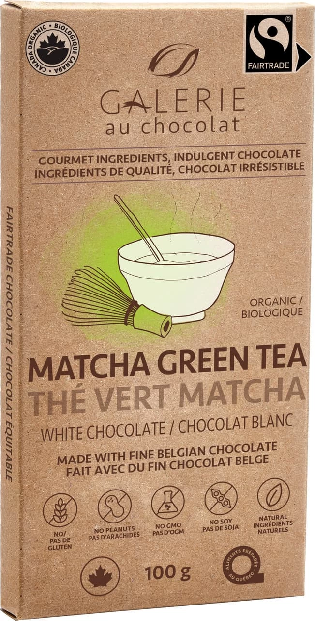 - Ingredients: cane sugar, cocoa butter, whole milk powder, matcha green tea powder and natural vanilla