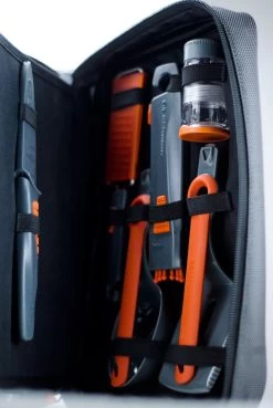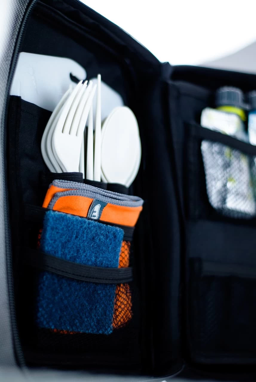 This handy kit has all the essentials for preparing, seasoning, consuming, and cleaning up after gourmet basecamp meals.