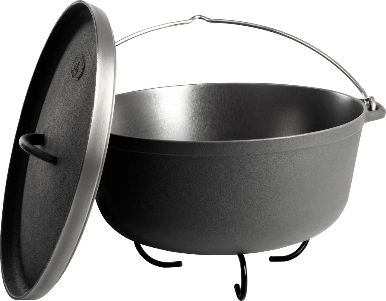 Bake, steam, roast or stew on a stove or over an open fire and elevate your cooking at home or at the campsite. This cast iron dutch oven is lighter than traditional cast iron pans, without losing cooking performance.