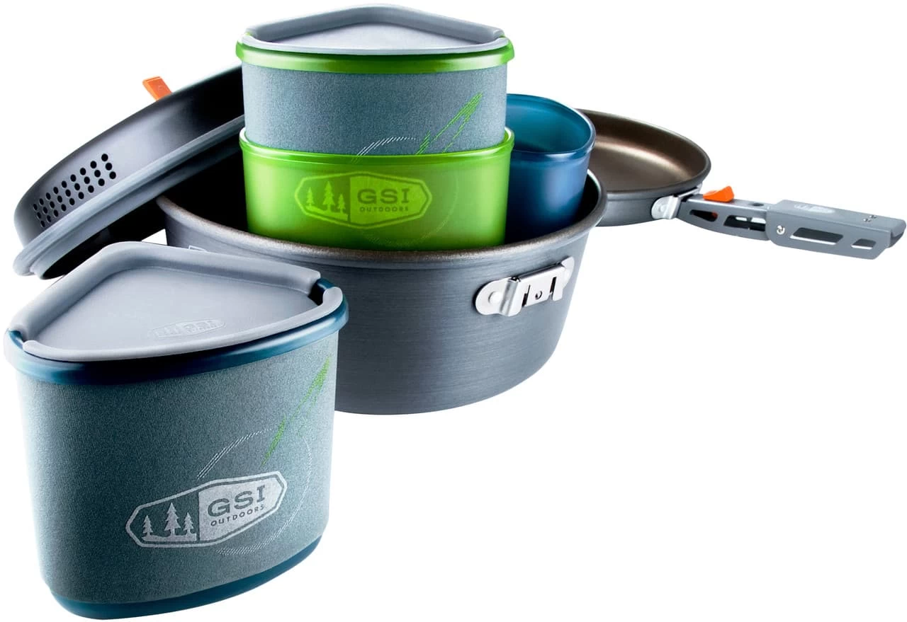 Ready, set, chow down. This convenient two-person, non-stick cookset is great for portability, durability and efficiency. The cookware is made from hard-anodized aluminum and Teflon® Radiance technology for awesome abrasion-resistance.
