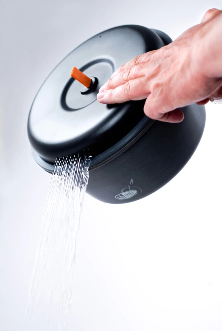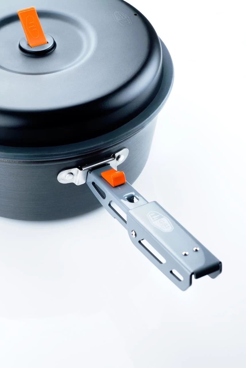 Beyond boil-and-rehydrate, there’s real cooking with real food. Enter the Pinnacle Base Camper, with lots of thoughtful details to make multi-course meals easy. Anodized aluminum provides superb heat distribution and the Teflon® Radiance coating resists abrasion and scratches. Pot lids with built-in strainers prevent the tragedy of spilled spaghetti. Get cooking.