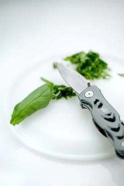 - Cutting board with dished and flat sides packs between pots to protect the non-stick surfaces and prevents clattering