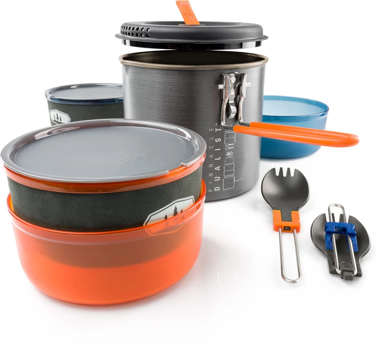 - Set includes a 1.8L pot with strainer lid, two 590ml insulated cups, two 590ml bowls, two Sip-It lids, two telescoping foons, a stove bag and stuff sack