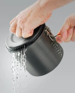 - Nylon lid has an integrated strainer and heat-proof silicone rim. Put the lid on during transport to prevent the pot from getting crushed
