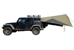 Turn your carboot into a ballroom. This tarp attaches to your vehicle without the need for a roof rack, and adds an extra shelter from rain, sun or wind. The single pole design is easy to set up, even in a downpour.