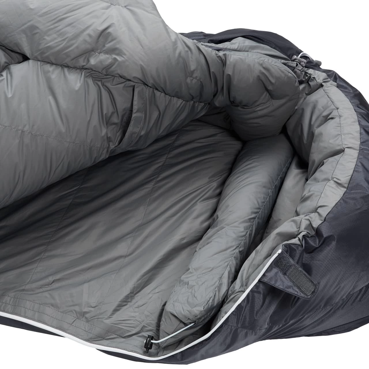 A field-proven, cold-weather bag for skiers and winter mountaineers who need warmth and compact volume. Sophisticated tailoring and copious 750-fill power goose down create a high-loft bag with concentrated warmth. The shell is a breathable laminate that sheds condensation to prevent the bag from gathering moisture or feeling damp. Its yoke and muff collar system completely encircles your neck to seal out drafts.