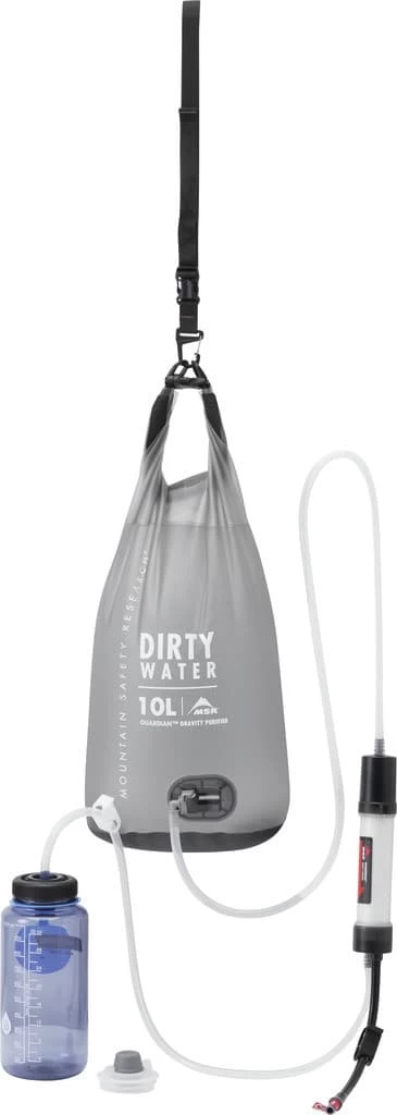 A true game changer that makes almost any questionable water source safe to drink. The Guardian purifies and filters water, so you don’t need to carry chemical water treatment or a UV purifier when you’re in virus territory. The gravity system is a low-effort option that needs no pumping – simply fill and raise the reservoir and let gravity filter and purify your water while you set up camp, prep dinner, or just relax.
