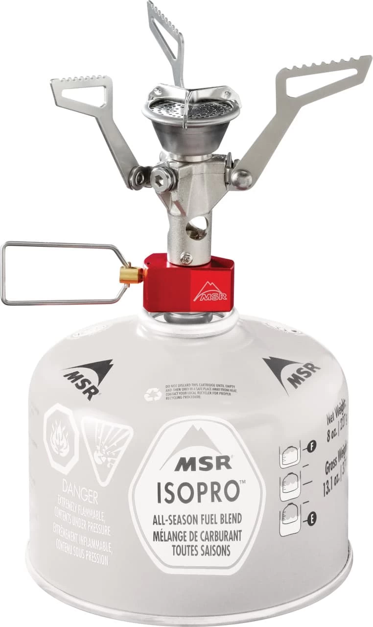 Just as speedy as the original PocketRocket, but now smaller and even lighter. If you’re aiming to keep your pack weight and size to a minimum, this is your stove. It stows neatly in its own little carrying case and can be slipped inside your coffee mug (if you choose to carry one). The built-in Wind Clip windshield system protects the burner from being blown out by gusts. The burner control is a good size, so you can fine tune the flame even with cold hands or when wearing bulky gloves.