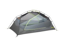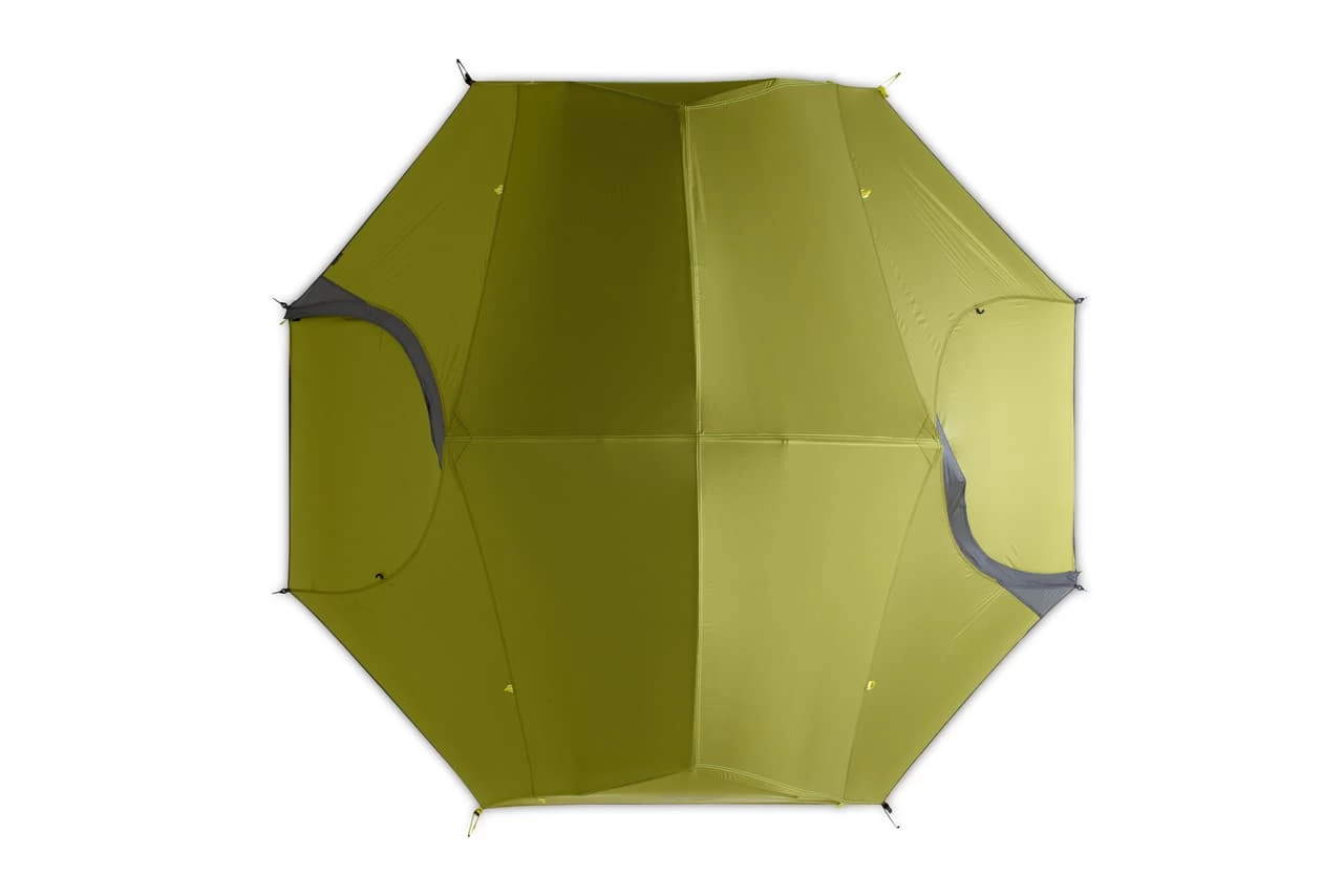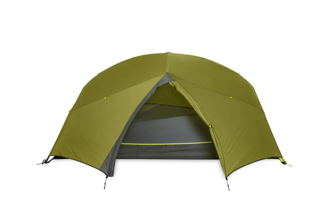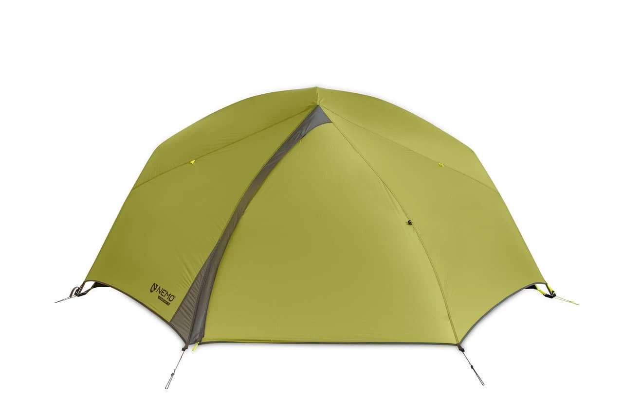 Hit the backcountry in comfort. The Dagger is a lightweight 2-person tent that doesn’t skimp on livable space, with pre-bent poles for greater headroom inside. Updated with Nemo’s new OSMO™ fabric on the fly and floor, it maintains the same water protection and durability properties of the previous version, but dries much faster and doesn’t sag when it gets wet. Two extra-large vestibules provide plenty of gear storage and a dry place to put your boots on. The Divvy™ stuff sack lets you split the loads evenly between you and your hiking partner.