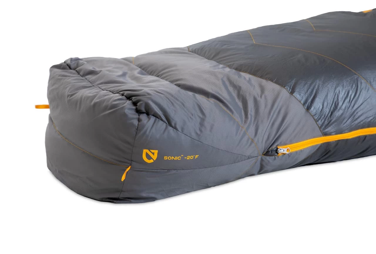 Nemo’s award-winning Sonic is updated to make a good bag better, with a few extra features to ensure you get a great night’s sleep. A redesigned collar and hood seal out cold and retain warmth where you need it. Stretch stitching at the knees maximizes internal volume and make side-sleeping easier in this form-fitting mummy bag. Thermo Gills™ allow you to dial-in the perfect temperature when you’re warm, but the air outside is too cold to unzip – like cracking a widow. Overstuffed with 800 fill-power hydrophobic down to offer serious warmth in serious weather.