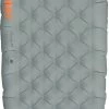 Comfort that comes in at the size of a 1L water bottle. The Nemo Tensor sleeping pad is here to be your comfortable backcounty bed without weighing you down. Waves of supportive plush baffles spread your weight out across the pad, so there are no pressure points or cold spots. Dual insulating layers ride above and below the baffles to keep you silently warm – none of that chip bag-esque crinkling. Represents Nemo’s lightest and most technical sleeping pad line.