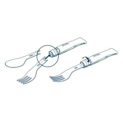 Picnicking with an Opinel just got a lot easier. Add a fork and spoon to your beloved Opinel No. 08 pocketknife. This clever fork and spoon insert locks into the No. 08 pocketknife with the same lock ring used to secure the blade.