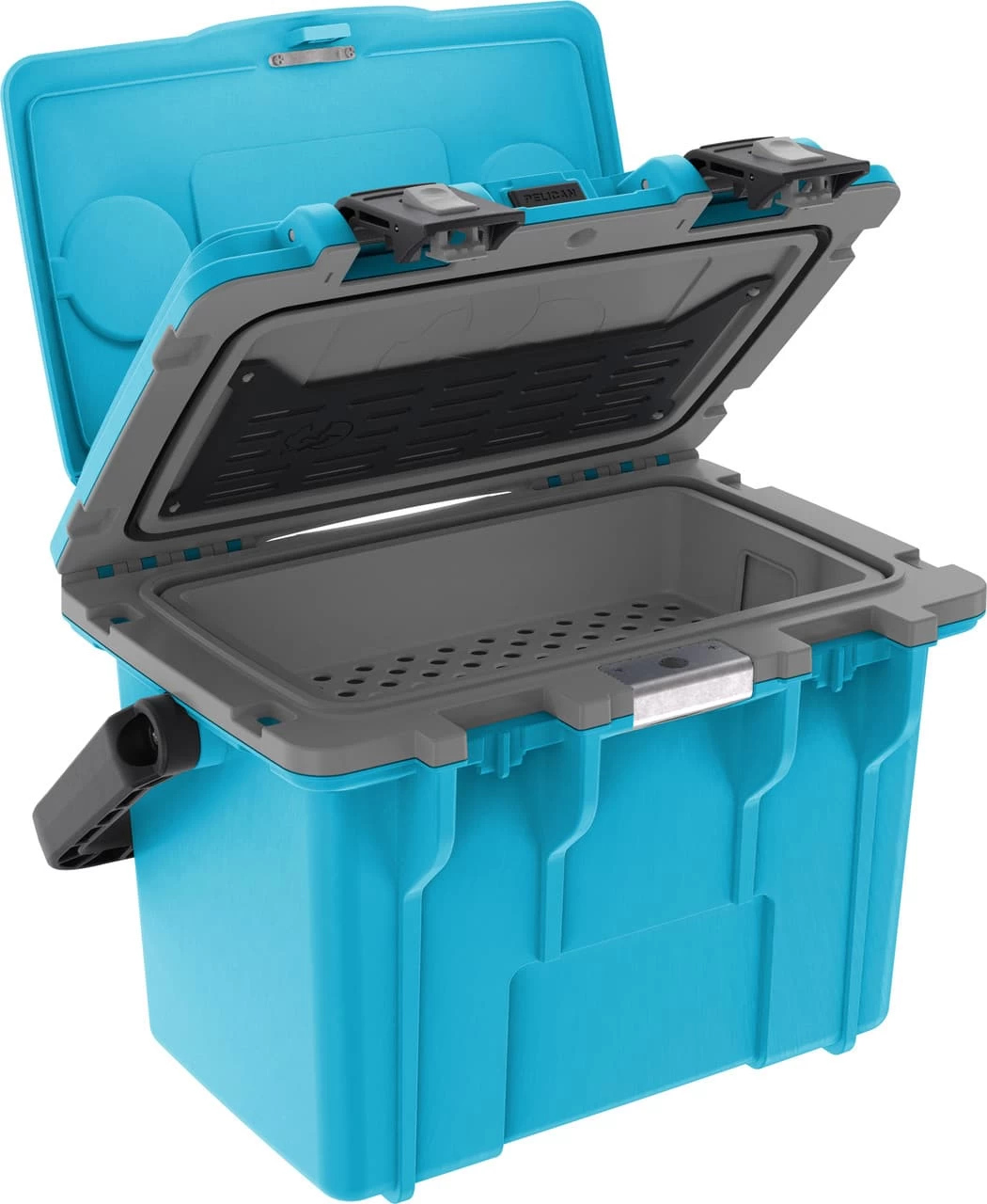 Boating or beaching, the Personal Cooler carries all your food for the weekend. Built with Pelican injection-moulding technology used to protect precise electronic equipment for decades. Multiple storage compartments and a dry area in the lid, so you can kick back, grab a snack, and pop a cold one.