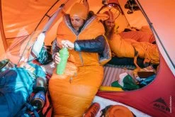 A cold-weather bag with a trim, efficient cut to please alpinists, expedition climbers and skiers out on extended tours. It’s light, very compact and capitalizes on the modern tech of hydrophobic down, reflective lining, and an engineered toe pocket that traps heat around your feet. Designed with input from polar explorer Eric Larson, it incorporates expedition-worthy features like a snorkel hood, central zip and overlapping side vents.