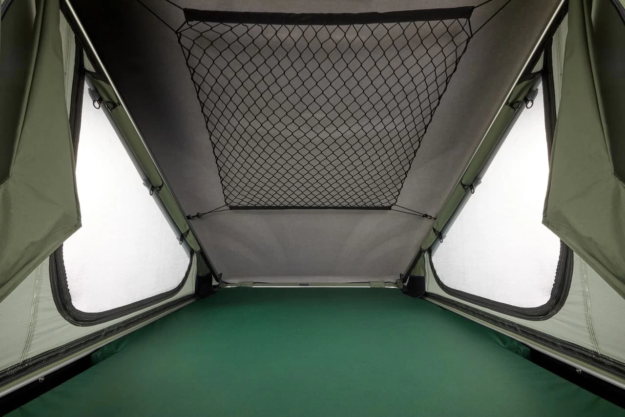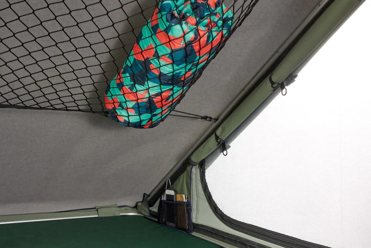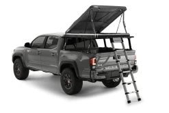 Store all your gear in a spacious roof box, then convert it into a pop-up rooftop tent when it’s time to turn in. The hardshell case has tons of storage space and opens wide at one end on shock-assisted hinges for easy access to your gear. At night, zip on the waterproof tent body, attach the telescoping ladder to one side and climb on up into your rooftop nest. Drift off to sleep on the cushy foam mattress while the breeze drifts in through the mesh side windows.